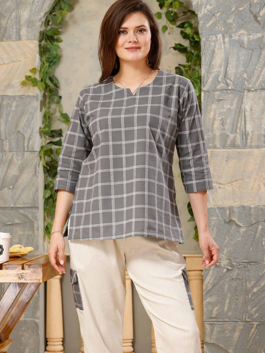 Charcoal checks short kurti sounds like a stylish choice! Checks patterns can add a trendy and chic look to a kurti. Its a versatile design that can be paired with different bottoms like leggings, palazzos, or even jeans depending on the occasion. Charcoal color tends to be a classic and sophisticated choice. Its great for both casual and semi-formal events. Enjoy styling your outfit!