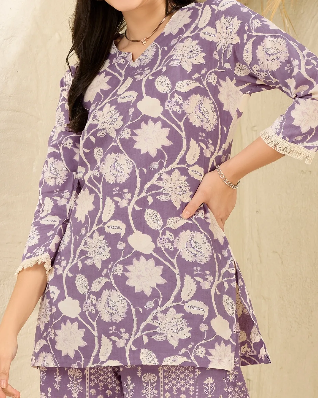 Wrap yourself in pure comfort with our printed cotton loungewear, designed for those who appreciate effortless style and relaxation. Made from breathable, lightweight cotton, this set keeps you feeling fresh and cozy all day long, whether youre lounging at home or stepping out for a casual errand. The soft fabric gently embraces your skin, while the vibrant prints add a touch of personality and charm to your wardrobe.