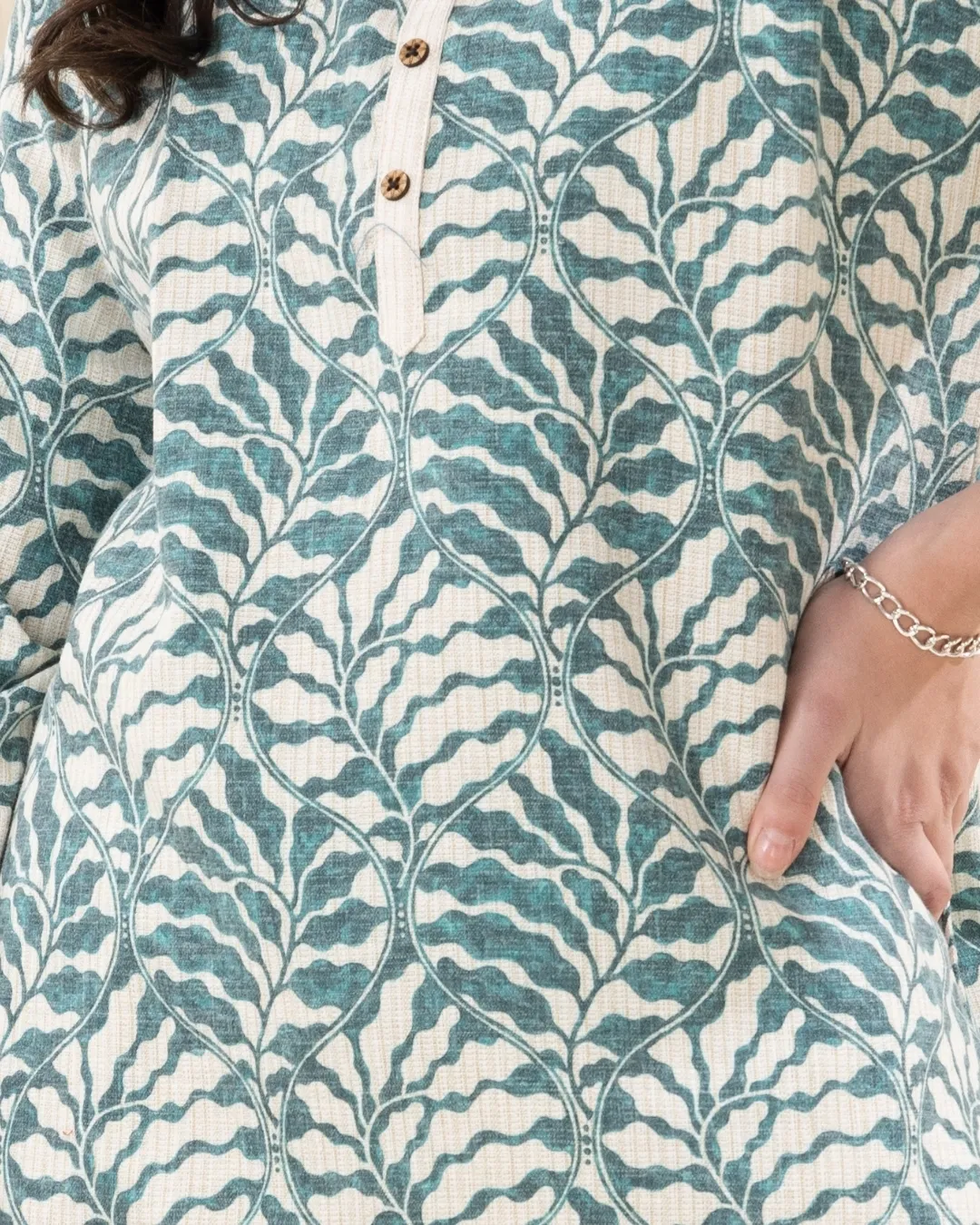 this loungewear set offers a stylish and effortless look. The unique prints add a playful yet sophisticated touch, making relaxation an art.